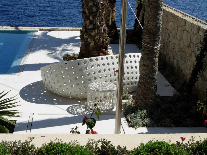 Realizzazione di una villa privata sita su una scogliera a Ibiza. Il progetto realizzato e seguito dallo studio IFT di Pontirolo Nuovo (BG) www.iftitaly.it comprendeva la posa di vari ambienti, bagni, saune, cucina, terrazzamenti esterni e piscina. La scelta del materiale non è stata facile a causa della vicinanza del mare e quindi al deterioramento del materiale. Si è quindi scelto di utilizzare la pietra Sinai che ben si adatta al tipo di intervento. Tecnomar si è occupata di tutte le fasi di lavorazione del materiale, dalle misurazioni ed esigenze da parte del progettista, alla fornitura e infine alla posa per dare il prodotto finito a regola d'arte.